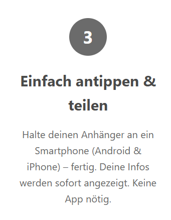 Halte deinen Anhänger einfach an ein Smartphone und teile sofort, was dir wichtig ist: Instagram-Profil, Kontaktdaten, Portfolio oder eine persönliche Nachricht. Du programmierst ihn selbst – so oft du willst, ganz nach deinem Bedarf.