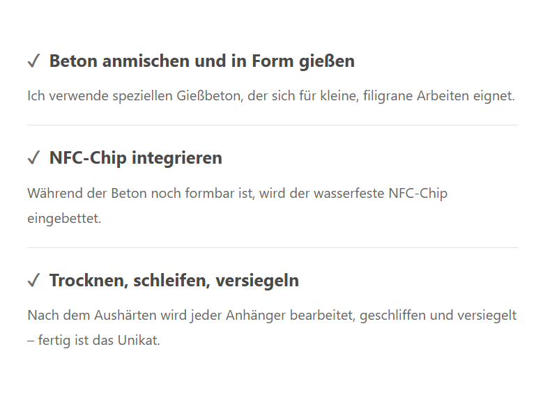 Als ich anfing, Betonanhänger zu gießen, merkte ich schnell: Die Leute lieben das Handgemachte, das Individuelle. Aber ich wollte noch einen Schritt weitergehen.